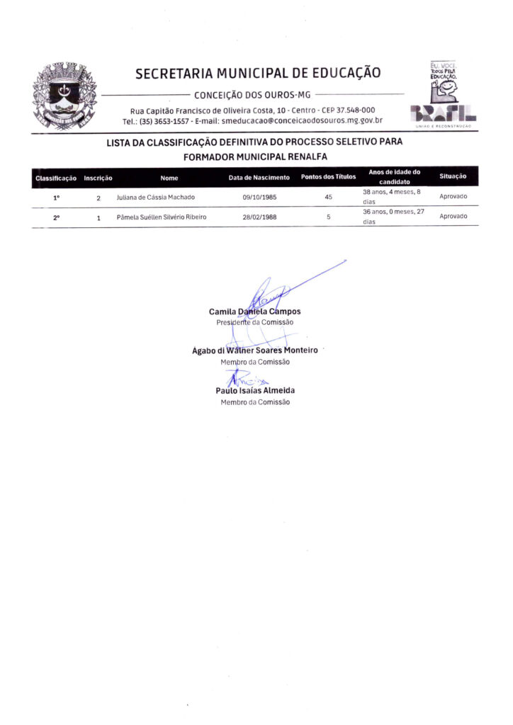 Processo Seletivo LEEI – Classificação Definitiva para Formador Municipal Renalfa
