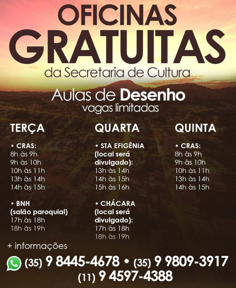Oficinas gratuitas da Secretaria de Cultura! Início / Notícia / ⚠️ Inscreva-se no formulário contido no link abaixo: 👉🏼 👉🏼 👉🏼 https://forms.gle/2dCMRQiVPaPzfeas7